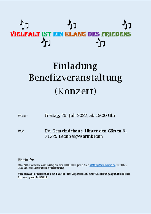 5. Stiftungskonzert am 07. Juli 2023 in Leonberg-Warmbronn